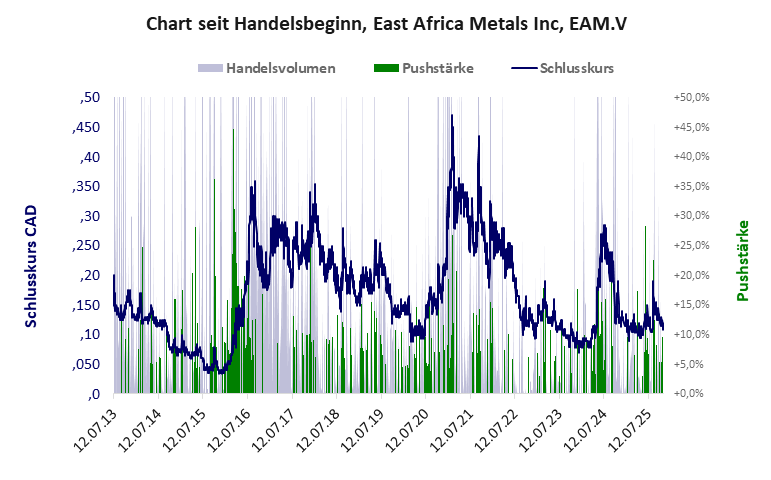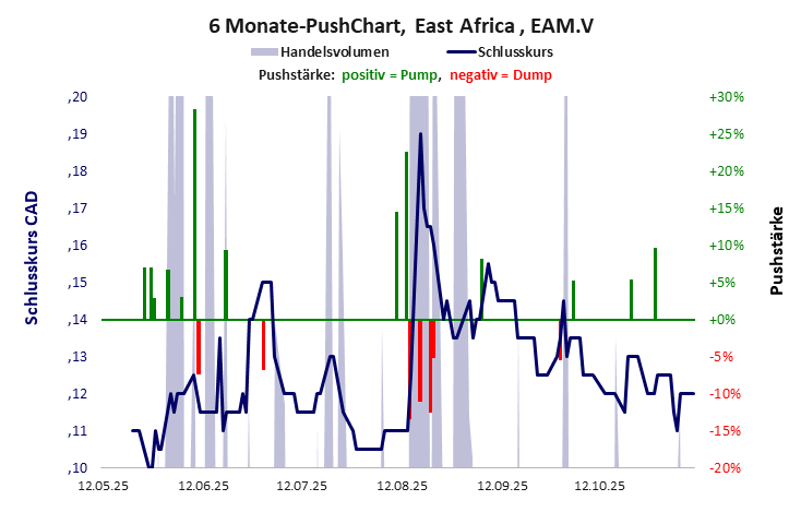 East Africa hat ein unbefriedigendes Scoring in Klasse D. Es ist ein mickriger Pennystock mit einem starken Kursverlust. Das Gesamtvermögen ist überschaubar, die Vermögenswerte scheinen sehr werthaltig zu sein, der Umsatz ist nicht existent, die Ertragslage extrem verlustreich, die Geldverbrennung extrem hoch.