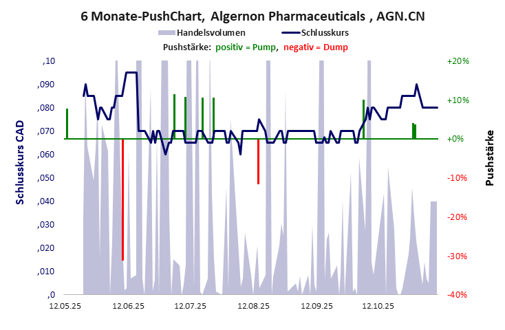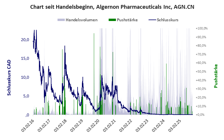 Algernon Pharmaceuticals hat ein sehr schlechtes Scoring in Klasse D. Es ist ein mickriger Pennystock mit praktisch einem Totalverlust. Das Gesamtvermögen ist karg, die Vermögenswerte scheinen nicht vorhanden zu sein, der Umsatz ist nicht existent, die Ertragslage extrem verlustreich, die Geldverbrennung extrem hoch.