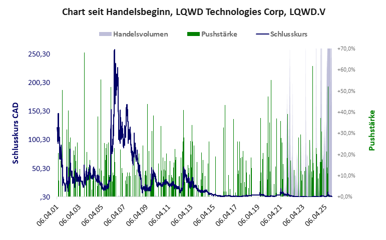 LQWD Technologies hat ein schlechtes Scoring in Klasse D. Es ist eine billige Aktie mit praktisch einem Totalverlust. Das Gesamtvermögen ist überschaubar, die Vermögenswerte scheinen nicht vorhanden zu sein, der Umsatz ist mickrig, die Ertragslage extrem verlustreich, die Geldverbrennung extrem hoch.