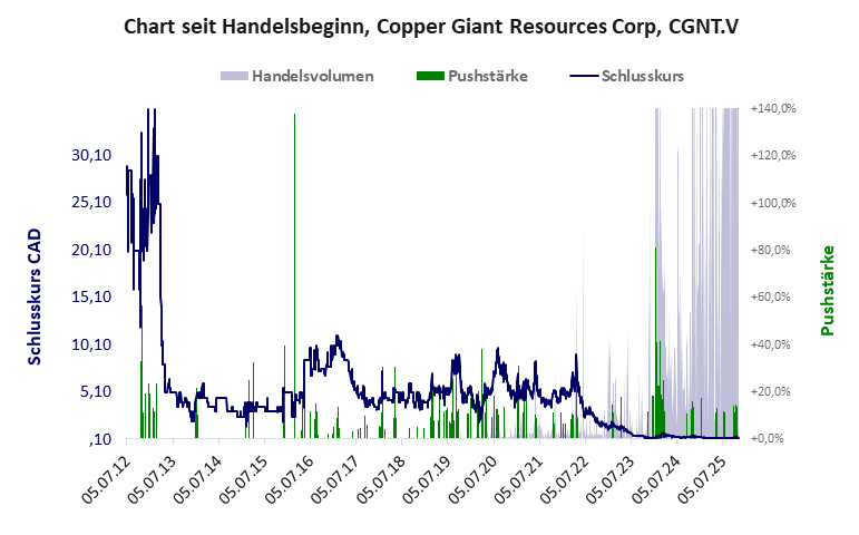 Copper Giant hat ein sehr schlechtes Scoring in Klasse D. Es ist ein kleiner Pennystock mit praktisch einem Totalverlust. Das Gesamtvermögen ist karg, die Vermögenswerte scheinen noch werthaltig zu sein, der Umsatz ist nicht existent, die Ertragslage extrem verlustreich, die Geldverbrennung extrem hoch.
