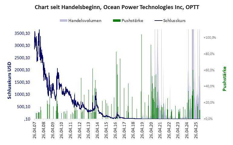 Ocean Power hat ein sehr schlechtes Scoring in Klasse D. Es ist ein kleiner Pennystock mit praktisch einem Totalverlust. Das Gesamtvermögen ist überschaubar, die Vermögenswerte scheinen wenig werthaltig zu sein, der Umsatz ist überschaubar, die Ertragslage extrem verlustreich, die Geldverbrennung extrem hoch.