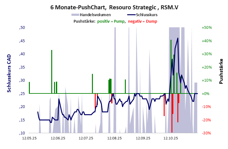 Die Pushstärke ist ein Maß, wie stark der Handelskurs der jüngsten Zeit vom Durchschnitt der Vergangenheit abweicht, und belegt somit Pushaktivitäten