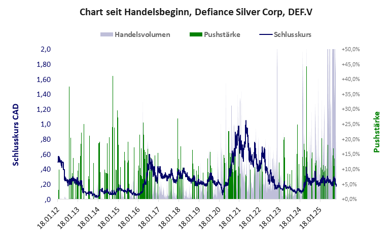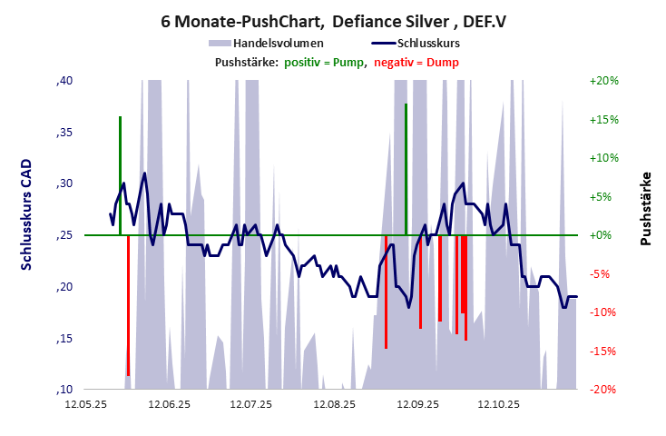 Defiance Silver hat ein schlechtes Scoring in Klasse D. Es ist ein mickriger Pennystock mit einem starken Kursverlust. Das Gesamtvermögen ist beträchtlich, die Vermögenswerte scheinen nicht werthaltig zu sein, der Umsatz ist nicht existent, die Ertragslage extrem verlustreich, die Geldverbrennung erträglich.