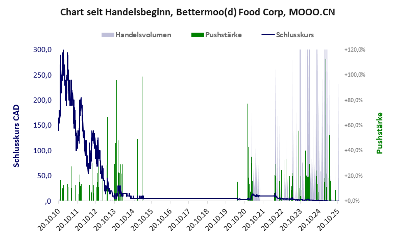 Bettermoo(d) Food hat ein inakzeptables Gesamtscoring in Klasse D. Es ist ein mickriger Pennystock mit praktisch einem Totalverlust. Das Gesamtvermögen ist karg, die Vermögenswerte scheinen nicht vorhanden zu sein, der Umsatz ist überschaubar, die Ertragslage extrem verlustreich, die Geldverbrennung extrem hoch.