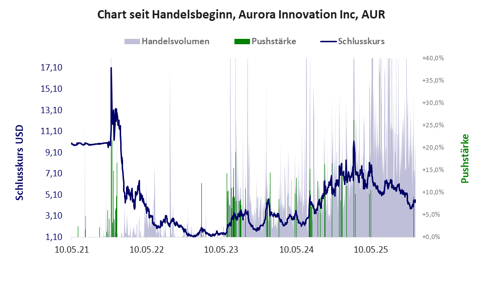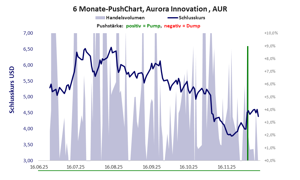 Die Pushstärke ist ein Maß, wie stark der Handelskurs der jüngsten Zeit vom Durchschnitt der Vergangenheit abweicht, und belegt somit Pushaktivitäten