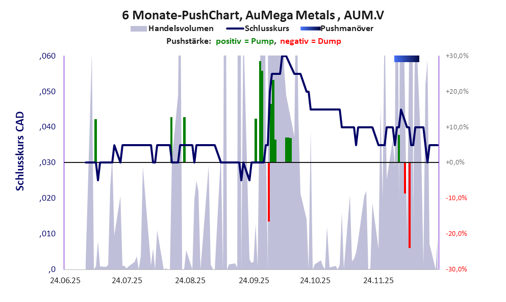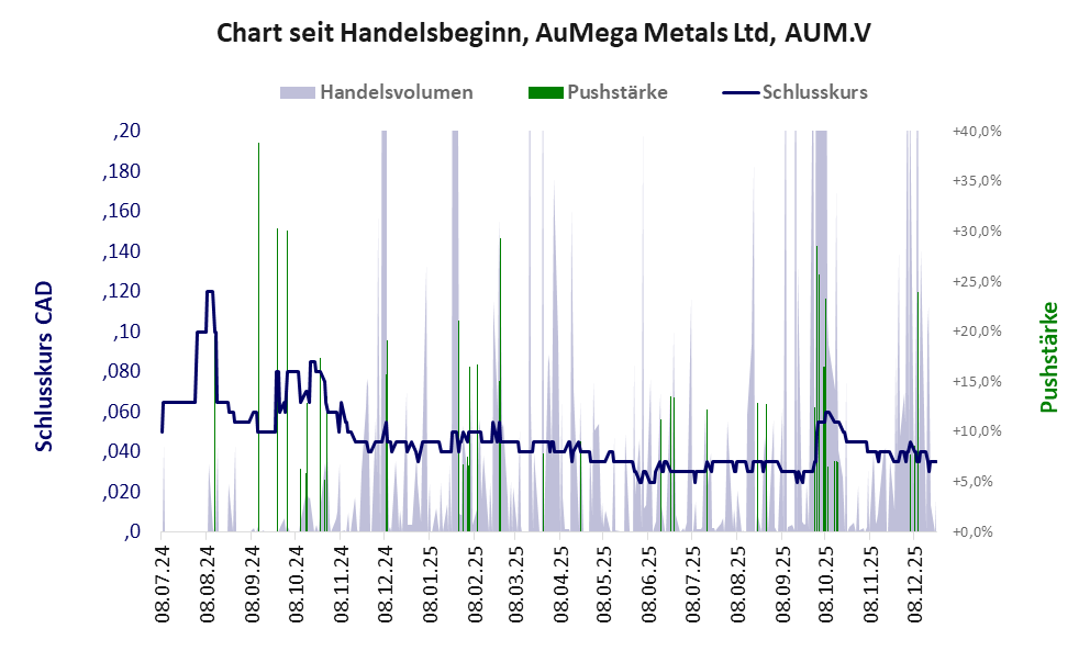 AuMega Metals ist ein kmU mit einer Pusher-Aktie der Klasse II und den Eckdaten: