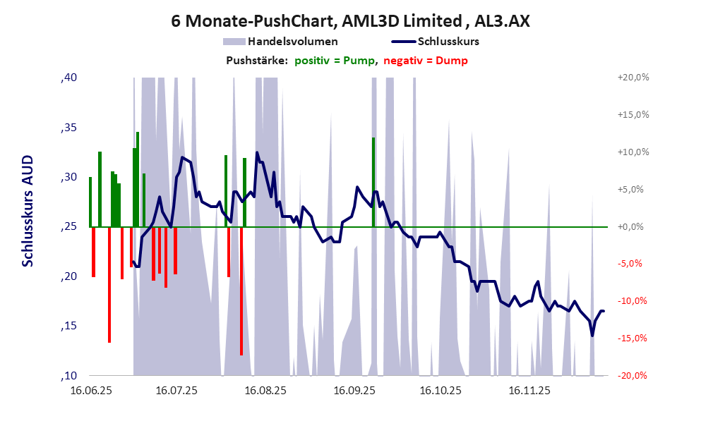 Die Pushstärke ist ein Maß, wie stark der Handelskurs der jüngsten Zeit vom Durchschnitt der Vergangenheit abweicht, und belegt somit Pushaktivitäten