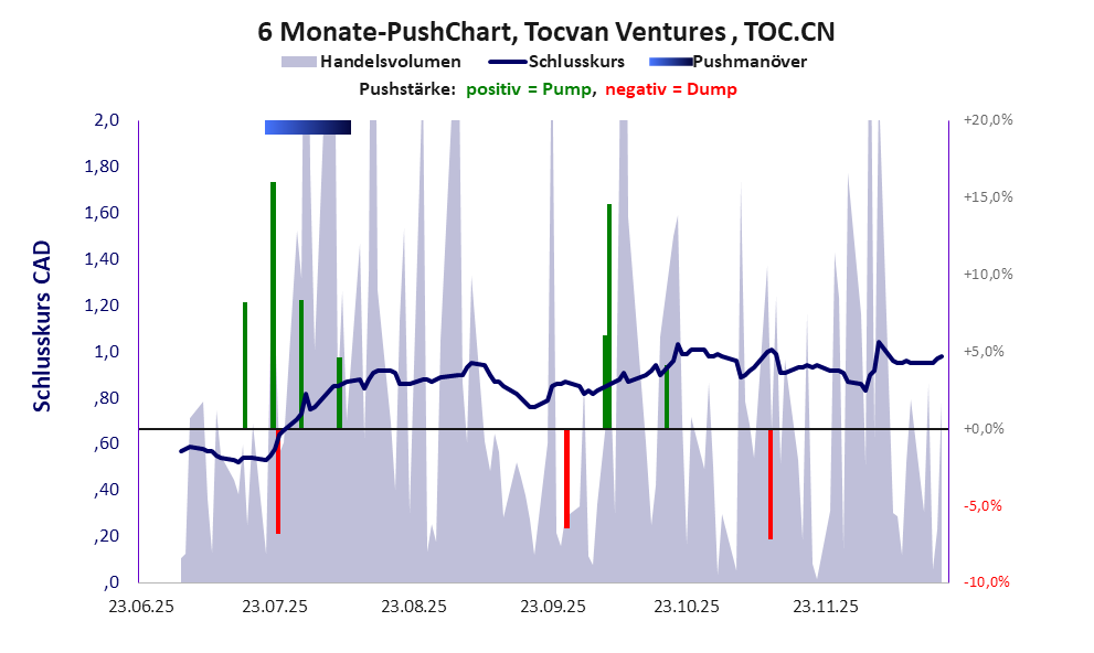 Die Pushstärke ist ein Maß, wie stark der Handelskurs der jüngsten Zeit vom Durchschnitt der Vergangenheit abweicht, und belegt somit Pushaktivitäten