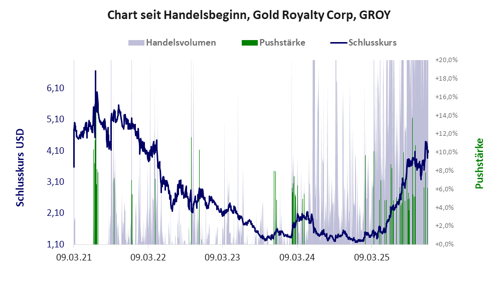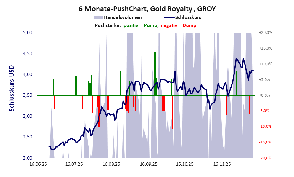 Netzwerk: Das Gold Royalty Modell überzeugt die Anleger wenig. Trotz massiven Pushmanövers ist der Kurs wieder im Sinkflug. Eine Pusheraktie mit Substanz.