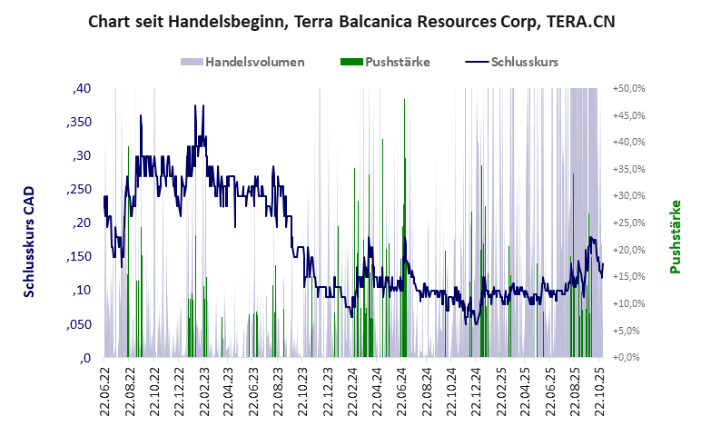 Terra Balcanica hat ein kritisches Gesamtscoring und ist ein mickriger Pennystock mit einem starken Kursverlust. Das Gesamtvermögen ist karg, die Vermögenswerte scheinen nicht werthaltig zu sein, der Umsatz ist nicht existent, die Ertragslage extrem verlustreich, die Geldverbrennung sehr hoch.