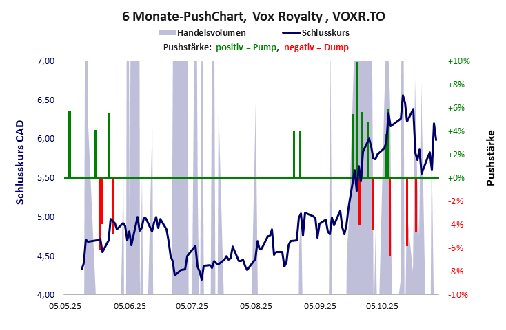 Die Pushstärke ist ein Maß, wie stark der Handelskurs der jüngsten Zeit vom Durchschnitt der Vergangenheit abweicht, und belegt somit Pushaktivitäten