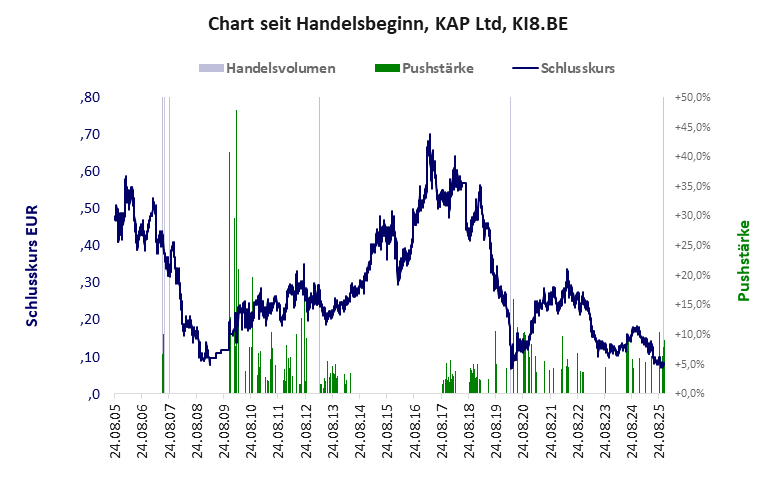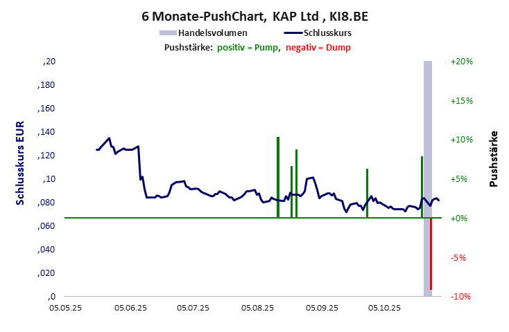 KAP Ltd hat ein sehr gutes Gesamtscoring und ist ein mickriger Pennystock mit einem riesigen Kursverlust. Das Gesamtvermögen ist sehr groß, die Vermögenswerte scheinen werthaltig zu sein, der Umsatz ist sehr groß, die Ertragslage mäßig, der Vermögensverlust gering.