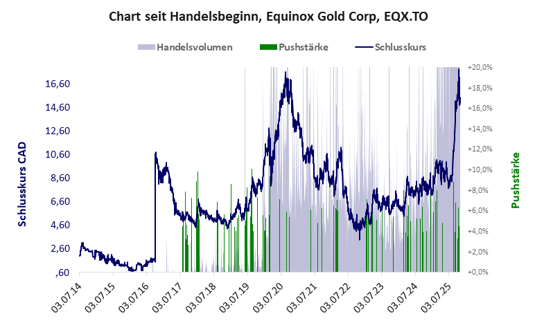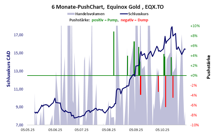 Die Pushstärke ist ein Maß, wie stark der Handelskurs der jüngsten Zeit vom Durchschnitt der Vergangenheit abweicht, und belegt somit Pushaktivitäten