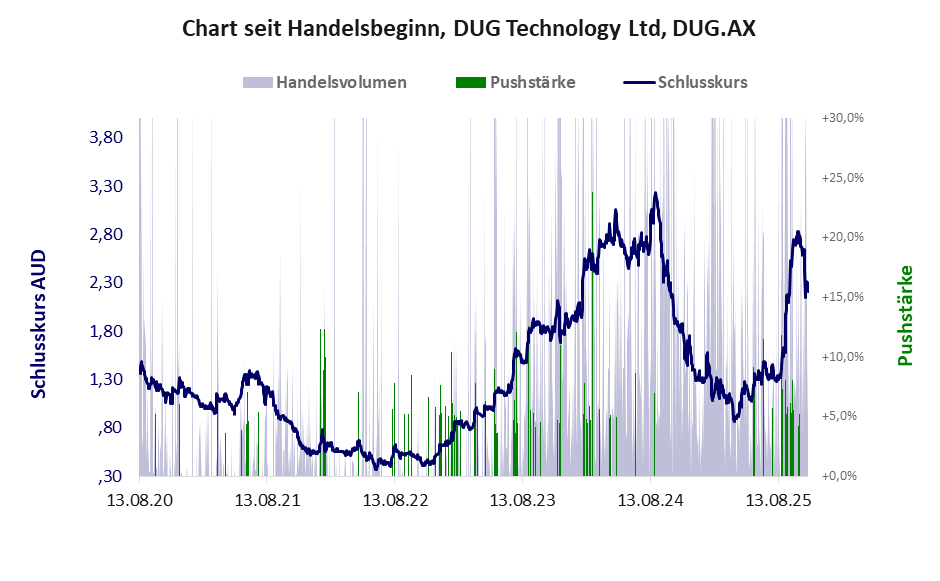 Die Aktie gehört zum Top-Börsensegment, ist ein Spitzenwert und jenseits aller Pushertätigkeit durch Akteure. Bei einem Aktienhype kann es dennoch zu hohen Pushstärken kommen.