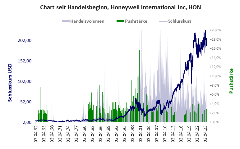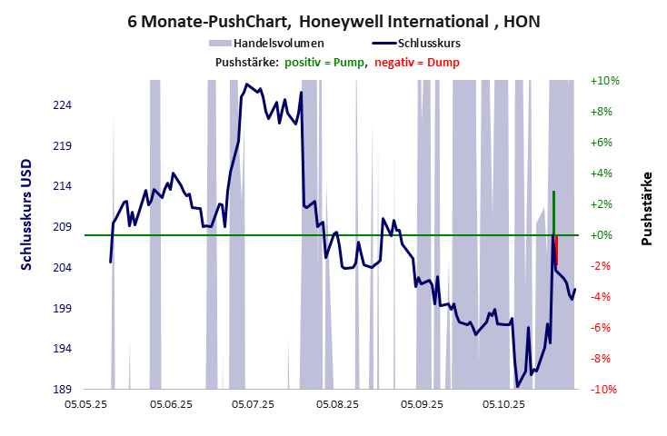 Die Pushstärke ist ein Maß, wie stark der Handelskurs der jüngsten Zeit vom Durchschnitt der Vergangenheit abweicht, und belegt somit Pushaktivitäten