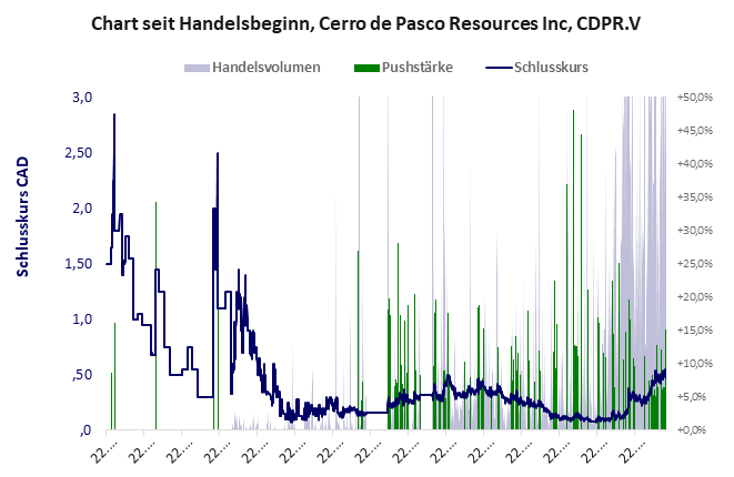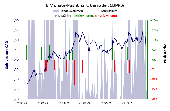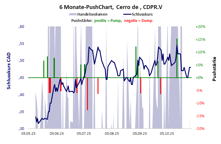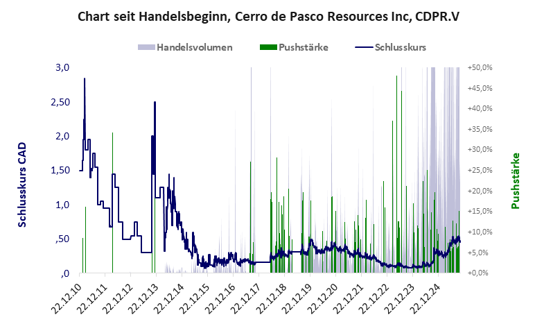 ein Winzling, der seit 15 Jahren jährlich 4,5 Mio. CAD verbrennt und im üblichen Netzwerk 1924 einen netten Push landete. Cerro de hat ein kritisches Gesamtscoring und ist ein kleiner Pennystock mit einem riesigen Kursverlust. Das Gesamtvermögen ist überschaubar, die Vermögenswerte scheinen noch werthaltig zu sein, der Umsatz ist nicht existent, die Ertragslage schlecht, die Geldverbrennung extrem hoch.