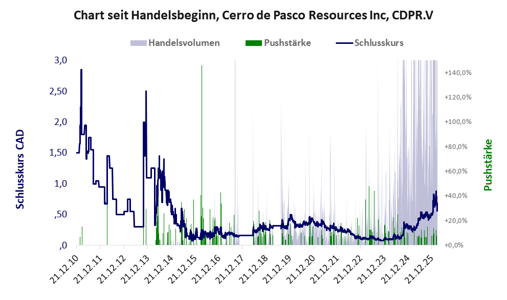 Bei dieser Aktie, über die Goldinvest berichtet, liegt das Inkassomodell vor und es gibt 3 Pump & Dump-Manöver. Das tägliche Handelsvolumen betrug an obiger Börse während der letzten drei Monate bis Berichtsdatum: 1.138.013 Stück, das sind 0,2% der ausgegebenen Aktien. In Aktien der Klasse V darf man grundsätzlich nicht investieren. Es gibt keinen ordentlichen Geschäftsbetrieb. Die Aktie hat nur den Zweck, mit Pushmanövern oder Algotrading an der Börse Kasse zu machen.