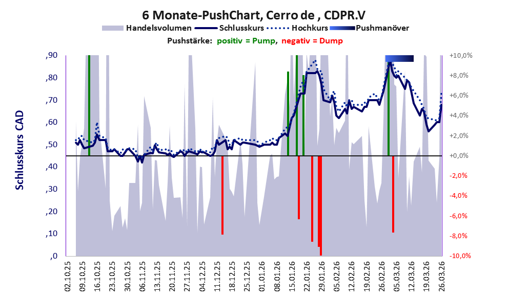 Die Pushstärke ist umso höher, je stärker die Kurse vom durchschnittlichen Verlauf abweichen und daher ein Verdacht auf Kursmanipulation besteht.