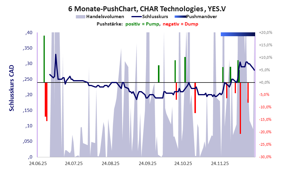 zeigt <abbr class='c2c-text-hover' title='bei einem Pushmanöver treiben Akteure und Medien den Aktienkurs manipulativ kurzfristig zum eigenen Vorteil nach oben.'>Pushmanöver</abbr> während der letzten sechs Monate