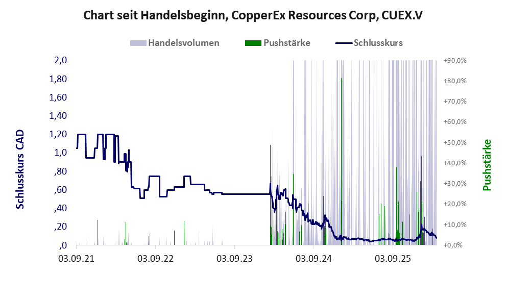CopperEx Resources ist ein Winzling mit einer Muell-Aktie der Klasse V und den Eckdaten: