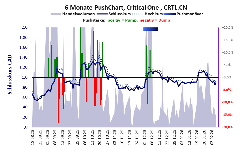 Über diese Aktie berichtet axino. Das tägliche Handelsvolumen betrug an obiger Börse während der letzten drei Monate bis Berichtsdatum: 76.763 Stück, das sind 0,2% der ausgegebenen Aktien. In Aktien der Klasse V darf man grundsätzlich nicht investieren. Es gibt keinen ordentlichen Geschäftsbetrieb. Die Aktie hat nur noch den Zweck, mit Pushmanövern oder Algotrading an der Börse Kasse zu machen.