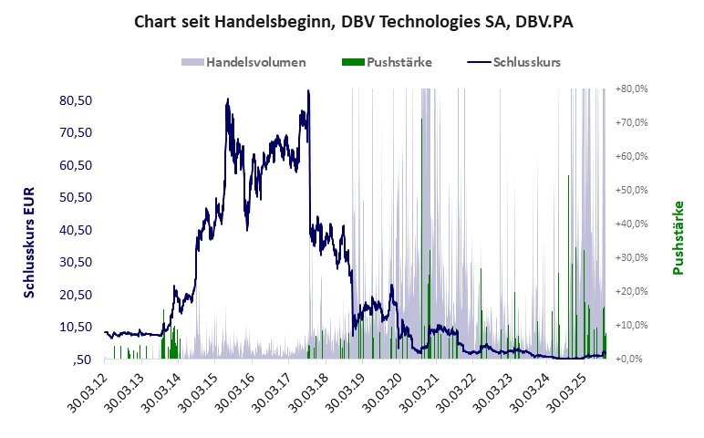 DBV Technologies hat ein schwaches Gesamtscoring und ist eine billige Aktie mit einem riesigen Kursverlust. Das Gesamtvermögen ist beträchtlich, die Vermögenswerte scheinen noch werthaltig zu sein, der Umsatz ist nicht existent, die Ertragslage extrem verlustreich, die Geldverbrennung extrem hoch.