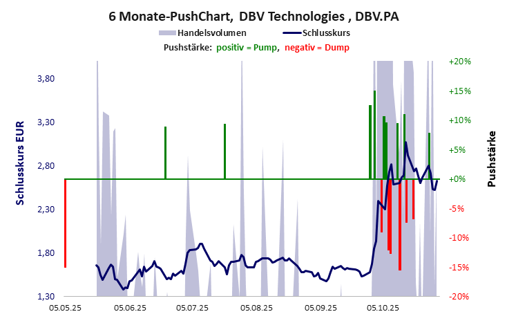 Die Pushstärke ist ein Maß, wie stark der Handelskurs der jüngsten Zeit vom Durchschnitt der Vergangenheit abweicht, und belegt somit Pushaktivitäten