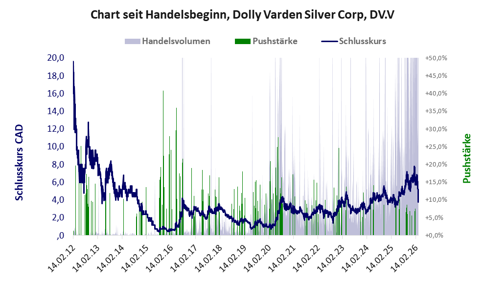 Dolly Varden ist ein typischer Vertreter der Junior Miners, denen man das Ziel abnehmen kann, eine Lagerstätte erfolgreich aufschließen zu wollen. Vom Standpunkt des Geologen, des Explorers, der Shareholder und der spekulativ ausgerichteten Finanziers hat das Unternehmen alle Chancen, erfolgreich zu sein. Dass Dolly Varden seit 13 Jahren 135 Mio. CAD verbrannt, nein, investiert hat, ist ein Zeichen für die Nachhaltigkeit der Exploration und nicht für deren Erfolglosigkeit. Um das Geld für die Exploration zu beschaffen, braucht es natürlich möglichst viele positive Nachrichten wie jüngst die laute Ankündigung des Listings der Aktie an der New York Stock Exchange.