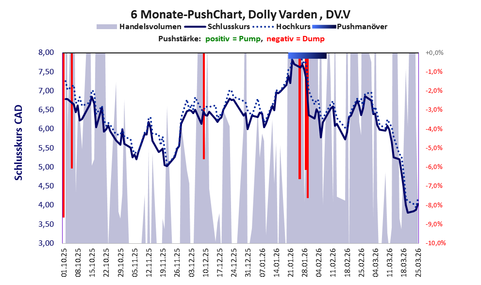 Bilanziert man nüchtern ohne die Blütenträume, auf den großen Silberschatz zu stoßen, dann bleiben nur die Tatsachen, dass die Finanzdaten schlecht sind und der Aktienkurs laufend gepusht wird. Welch soliden Anleger soll dieser Zustand dazu verlocken, diese Aktie zu kaufen? Das werden nur Zocker tun, die in den einschlägigen Foren aus persönlicher Überzeugung oder auf Geheiß nicht müde werden, Dolly Varden als den großen Wurf auszuloben, wenn man nur ein bisschen Geduld und Zuversicht habe. Und das seit gut einem Jahrzehnt?