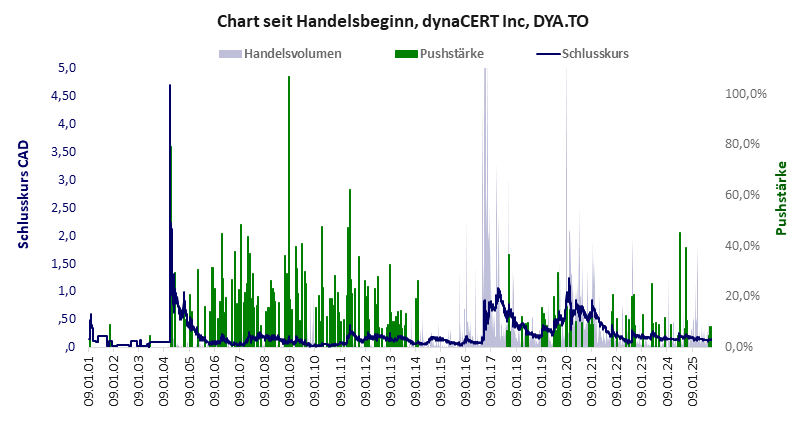 dynaCERT – eine endlose Geschichte dynaCERT Inc hat ein miserables Gesamtscoring und ist ein mickriger Pennystock mit einem erträglichen Kursverlust. Das Gesamtvermögen ist karg, harte Vermögenswerte scheinen werthaltig zu sein, der Umsatz ist überschaubar, die Ertragslage extrem verlustreich, das Defizit extrem hoch.