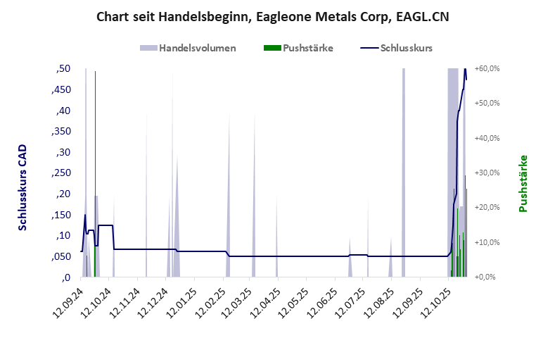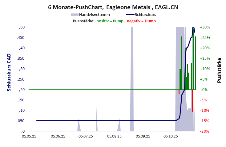 Eagleone Metals hat ein sehr schlechtes Gesamtscoring und ist ein kleiner Pennystock mit Kursgewinn. Das Gesamtvermögen ist karg, die Vermögenswerte scheinen nicht vorhanden zu sein, der Umsatz ist nicht existent, die Ertragslage extrem verlustreich, die Geldverbrennung sehr hoch.