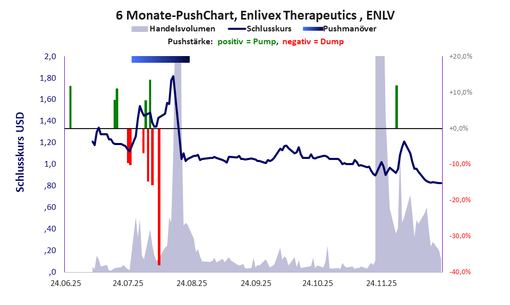 zeigt <abbr class='c2c-text-hover' title='bei einem Pushmanöver treiben Akteure und Medien den Aktienkurs manipulativ kurzfristig zum eigenen Vorteil nach oben.'>Pushmanöver</abbr> während der letzten sechs Monate