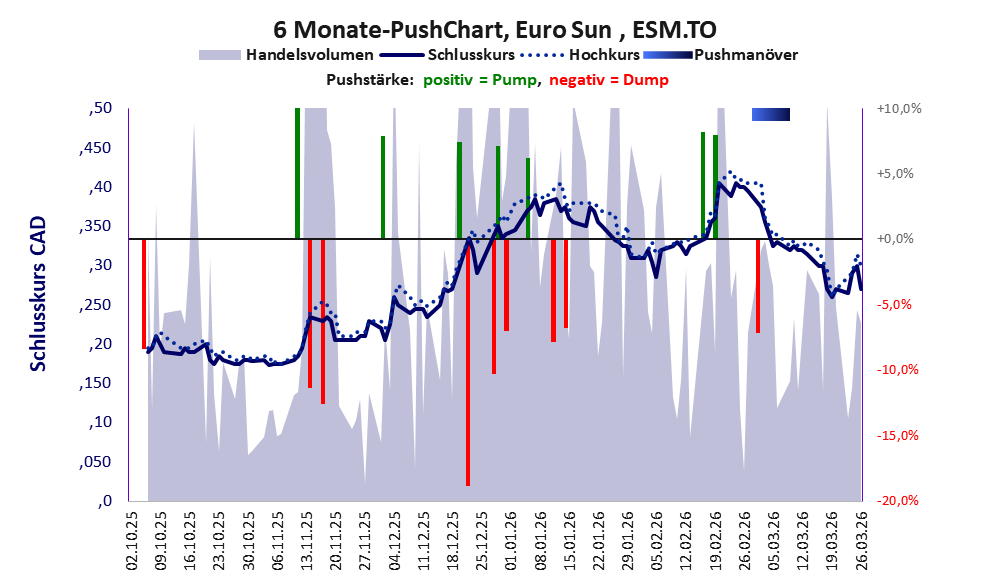 Bei dieser Aktie liegt das Refreshmodell vor. Das tägliche Handelsvolumen betrug an obiger Börse während der letzten drei Monate bis Berichtsdatum: 758.314 Stück, das sind 0,2% der ausgegebenen Aktien. In Aktien der Klasse V darf man grundsätzlich nicht investieren. Es gibt keinen ordentlichen Geschäftsbetrieb. Die Aktie hat nur den Zweck, mit Pushmanövern oder Algotrading an der Börse Kasse zu machen.