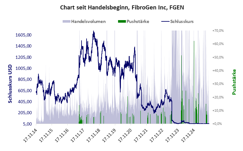 ein Pharma-Unternehmen, das 1,9 Mrd. USD für die Entwicklung eines Produkts in den Sand gesetzt hat. Die Meldung über die fehlgeschlagene Produktentwicklung ließ im Juni 2023 den Kurs um über 80% einbrechen. – Ein typisches Beispiel, wie hoch das Anlegerrisiko bei innovativen Pharmaunternehmen ist – wie auch bei Xbrane Biopharma. Es gibt aber auch den umgekehrten Fall. Nur das Verhältnis liegt irgendwo bei 1000 zu 1. FibroGen Inc hat ein schwaches Gesamtscoring und ist eine günstige Aktie mit praktisch einem Totalverlust. Das Gesamtvermögen ist groß, die Vermögenswerte scheinen nicht vorhanden zu sein, der Umsatz ist überschaubar, die Ertragslage verlustreich, die Geldverbrennung extrem hoch.