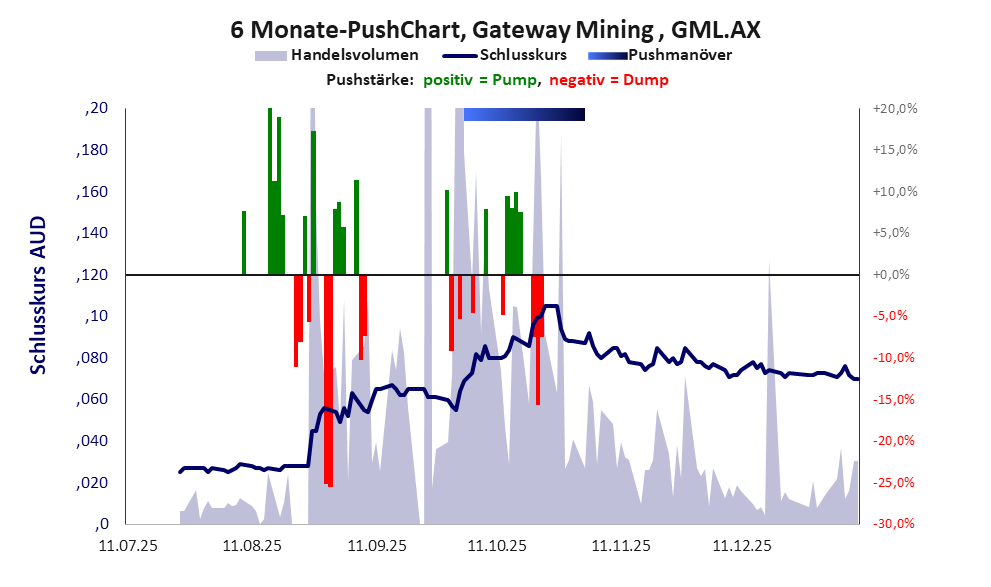Die Pushstärke ist umso höher, je stärker die Kurse vom durchschnittlichen Verlauf abweichen und daher ein Verdacht auf Kursmanipulation besteht.