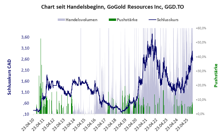 ein wertehaltiges Unternehmen ohne übliches Netzwerk, dessen Kurse immer wieder gepusht werden. GoGold Resources hat ein akzeptables Gesamtscoring und ist eine billige Aktie mit Kursgewinn. Das Gesamtvermögen ist groß, die Vermögenswerte scheinen werthaltig zu sein, der Umsatz ist groß, die Ertragslage gut, die Geldverbrennung gering.
