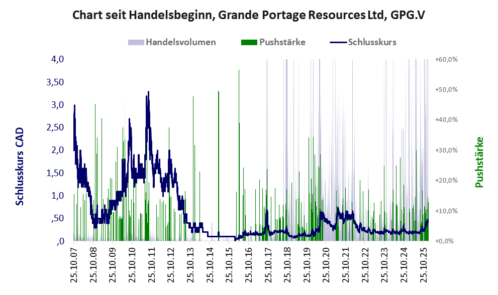 Grande Portage ist ein MiniKMU mit einer Pusher-Aktie der Klasse III und den Eckdaten:
