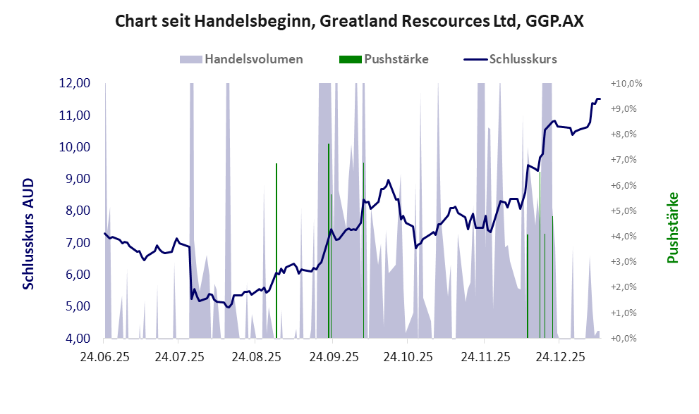 Die Pushstärke ist umso höher, je stärker die Kurse vom durchschnittlichen Verlauf abweichen und daher ein Verdacht auf Kursmanipulation besteht.