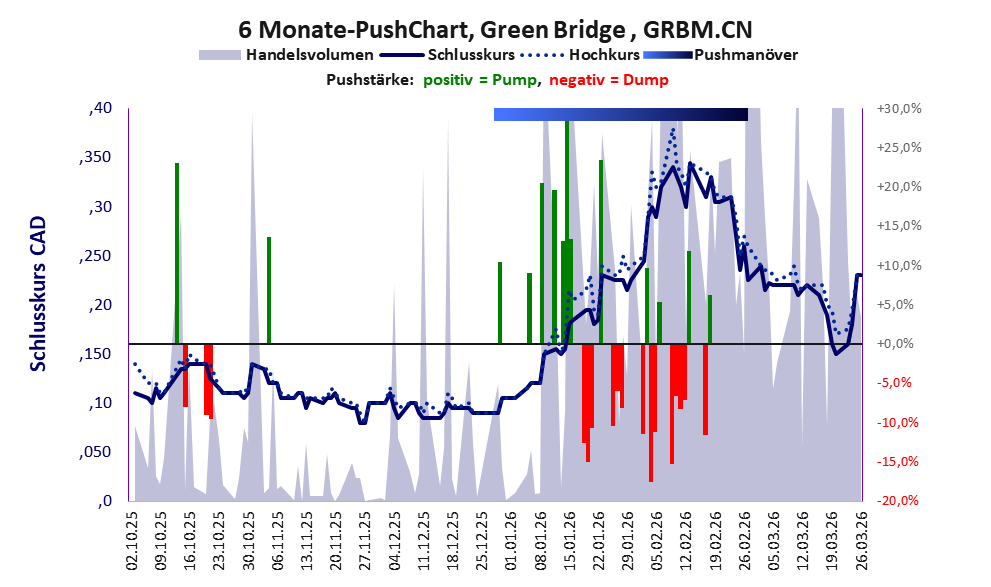 Bei dieser Aktie, über die JS-Research berichtet, gibt es 1 Pump & Dump-Manöver. Das tägliche Handelsvolumen betrug an obiger Börse während der letzten drei Monate bis Berichtsdatum: 656.742 Stück, das sind 0,4% der ausgegebenen Aktien. In Aktien der Klasse V darf man grundsätzlich nicht investieren. Es gibt keinen ordentlichen Geschäftsbetrieb. Die Aktie hat nur den Zweck, mit Pushmanövern oder Algotrading an der Börse Kasse zu machen.