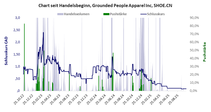 ein Potemkinsches Dorf ohne jeden Wert, nur für den Push aufgebaut. Grounded People hat ein miserables Gesamtscoring und ist ein mickriger Pennystock mit einem riesigen Kursverlust. Das Gesamtvermögen ist karg, harte Vermögenswerte scheinen nicht vorhanden zu sein, der Umsatz ist überschaubar, die Ertragslage extrem verlustreich, das Defizit extrem hoch.