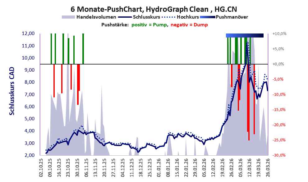 Bei dieser Aktie, über die Streetwise berichtet, gibt es 1 Pump & Dump-Manöver. Das tägliche Handelsvolumen betrug an obiger Börse während der letzten drei Monate bis Berichtsdatum: 1.426.663 Stück, das sind 0,4% der ausgegebenen Aktien. In Aktien der Klasse V darf man grundsätzlich nicht investieren. Es gibt keinen ordentlichen Geschäftsbetrieb. Die Aktie hat nur den Zweck, mit Pushmanövern oder Algotrading an der Börse Kasse zu machen.