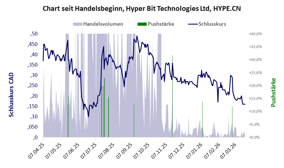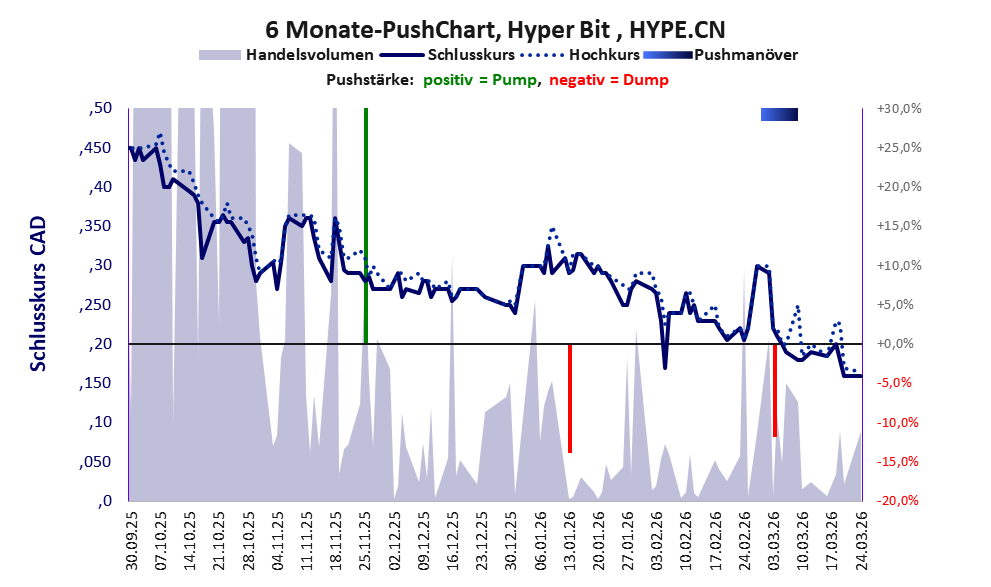 Über diese Aktie berichtet Aktiencheck. Das tägliche Handelsvolumen betrug an obiger Börse während der letzten drei Monate bis Berichtsdatum: 14.249 Stück, das sind 0,0% der ausgegebenen Aktien. In Aktien der Klasse V darf man grundsätzlich nicht investieren. Es gibt keinen ordentlichen Geschäftsbetrieb. Die Aktie hat nur den Zweck, mit Pushmanövern oder Algotrading an der Börse Kasse zu machen.