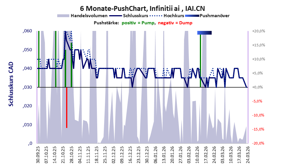Über diese Aktie berichtet w:o. Das tägliche Handelsvolumen betrug an obiger Börse während der letzten drei Monate bis Berichtsdatum: 103.375 Stück, das sind 0,1% der ausgegebenen Aktien. In Aktien der Klasse V darf man grundsätzlich nicht investieren. Es gibt keinen ordentlichen Geschäftsbetrieb. Die Aktie hat nur den Zweck, mit Pushmanövern oder Algotrading an der Börse Kasse zu machen.