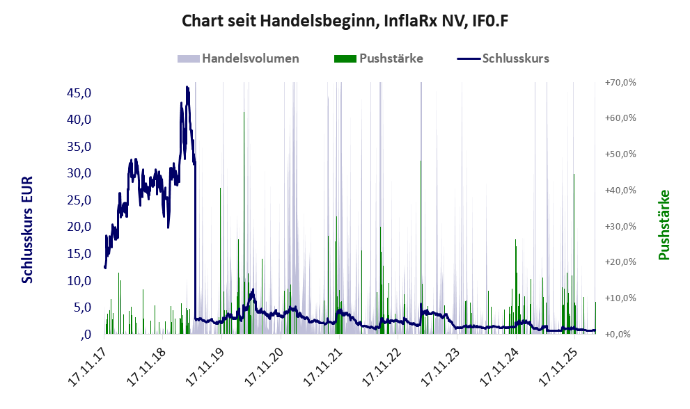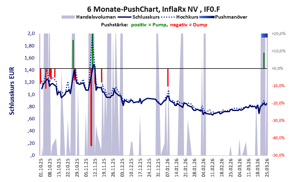 Bei dieser Aktie, über die w:o berichtet, liegt das Refreshmodell vor und es gibt 1 Pump & Dump-Manöver. Das tägliche Handelsvolumen betrug an obiger Börse während der letzten drei Monate bis Berichtsdatum: 1.023 Stück, das sind 0,0% der ausgegebenen Aktien. In Aktien der Klasse V darf man grundsätzlich nicht investieren. Es gibt keinen ordentlichen Geschäftsbetrieb. Die Aktie hat nur den Zweck, mit Pushmanövern oder Algotrading an der Börse Kasse zu machen.