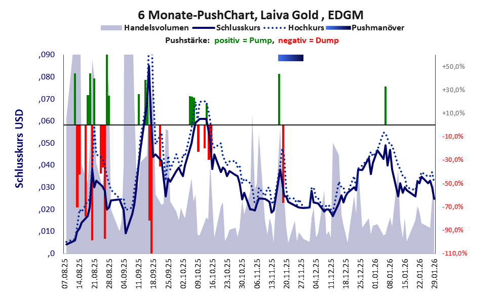 Bei dieser Aktie, über die Goldinvest berichtet, liegt das Inkassomodell vor und es gibt 14 Pump & Dump-Manöver.