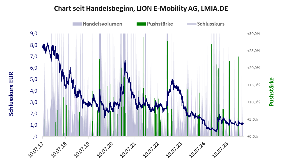 Über diese Aktie berichtet Aktiencheck-Forum. Das tägliche Handelsvolumen betrug an obiger Börse während der letzten drei Monate bis Berichtsdatum: 3.609 Stück, das sind 0,0% der ausgegebenen Aktien. Bei LION E-Mobility rechtfertigt das schwache operative Geschäft nicht die Geldverbrennung.