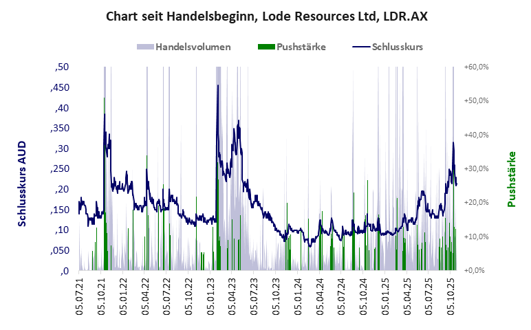 Der FinanzScore ist gut. Kein Wunder bei diesen mickrigen Finanzdaten, die nur belegen, dass es keinen ernstzunehmenden operativen Betrieb, also auch keine nennenswerte Exploration gibt. Was es gibt, das sind die hohen Pushaktivitäten seit Anbeginn des Aktienhandels. Diese Aktie kann außer Zockern niemand anrühren. Lode Resources hat ein mäßiges Gesamtscoring und ist ein kleiner Pennystock mit Kursgewinn. Das Gesamtvermögen ist überschaubar, die Vermögenswerte scheinen sehr werthaltig zu sein, der Umsatz ist nicht existent, die Ertragslage extrem verlustreich, die Geldverbrennung erträglich.