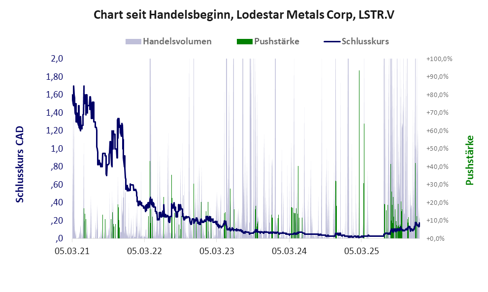 Bei dieser Aktie liegt das „Inkassomodell“ vor, bei dem der Aktienkurs zu Beginn der Geschichte sein Allzeithoch hat. Die Akteure verkaufen schon zu Beginn nach und nach ihre billigst erworbenen Aktien, so dass der Kurs in verhältnismäßig kurzer Zeit abstürzt. Danach dümpelt der Aktienkurs in den meistn Fällen nahe null dahin und die Aktie dient nur noch kleineren, dennoch gewinnbringenden Pushmanövern und in vielen Fällen dem Algotrading. Dem ersten Einbruch nachfolgende größere Pushmanöver sind aber nicht ausgeschlossen.