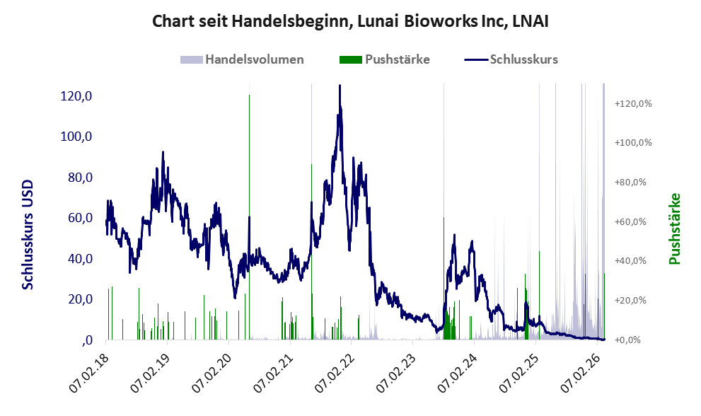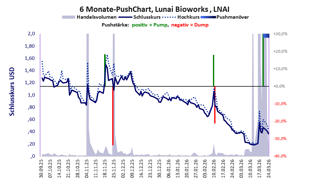 Bei dieser Aktie, über die w:o berichtet, liegt das Refreshmodell vor und es gibt 1 Pump & Dump-Manöver. Das tägliche Handelsvolumen betrug an obiger Börse während der letzten drei Monate bis Berichtsdatum: 12.028.749 Stück, das sind 49,7% der ausgegebenen Aktien. In Aktien der Klasse V darf man grundsätzlich nicht investieren. Es gibt keinen ordentlichen Geschäftsbetrieb. Die Aktie hat nur den Zweck, mit Pushmanövern oder Algotrading an der Börse Kasse zu machen.