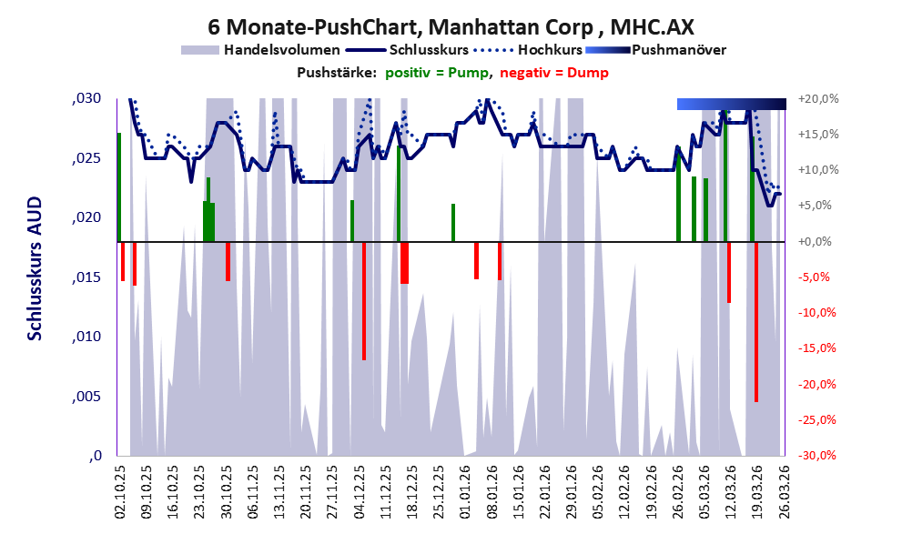 Bei dieser Aktie, über die Aktiencheck berichtet, gibt es 3 Pump & Dump-Manöver. Das tägliche Handelsvolumen betrug an obiger Börse während der letzten drei Monate bis Berichtsdatum: 1.074.396 Stück, das sind 0,2% der ausgegebenen Aktien. In Aktien der Klasse V darf man grundsätzlich nicht investieren. Es gibt keinen ordentlichen Geschäftsbetrieb. Die Aktie hat nur den Zweck, mit Pushmanövern oder Algotrading an der Börse Kasse zu machen.